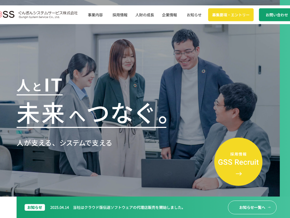 認定あり 群馬県 その他 従業員 141 名 ぐんぎんシステムサービス株式会社 ぐんぎんシステムサービス株式会社は群馬県前橋市のIT企業で、金融システム開発を中心に地域経済を支えています。テレワークや育児休業など子育てに配慮した働き方制度が整い、社員の成長支援にも力を入れています。 ★ くるみん ★ 群馬県いきいきGカンパニー認証制度 在宅勤務 時短勤務 気になるリストに追加 詳細を見る