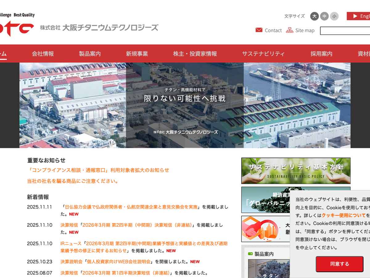 認定あり 兵庫県 その他 株式会社大阪チタニウムテクノロジーズ 1952年創業のチタン製造業、大阪チタニウムテクノロジーズは環境配慮と持続可能性を重視し、堅実な事業運営を行っています。育児支援に関する情報はありませんが、安定感ある経営が魅力です。 ★ くるみん 気になるリストに追加 詳細を見る